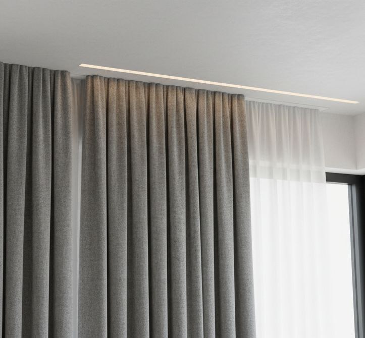 заменяет традиционный накладной карниз - интегрируется в потолок
